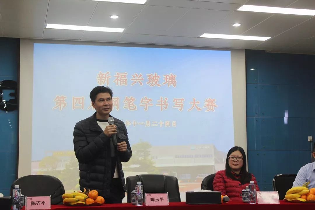 冬日里暖阳高照,碧空如洗。为秉承“习字育人,传承文明”的中华文化古韵,福建新福兴玻璃有限公司于11月24日举办了“筑梦新福兴 共建5A园”之书香情第四届钢笔字大赛。此次大赛共邀请到了32位同仁参赛(含江阴公司3位同仁),福清公司总裁陈玉平携总经理陈齐平、董事长特别助理陈小华、LOW-E事业部副总颜于、光伏事业部副总王本语、稽核员元为清担任评委。